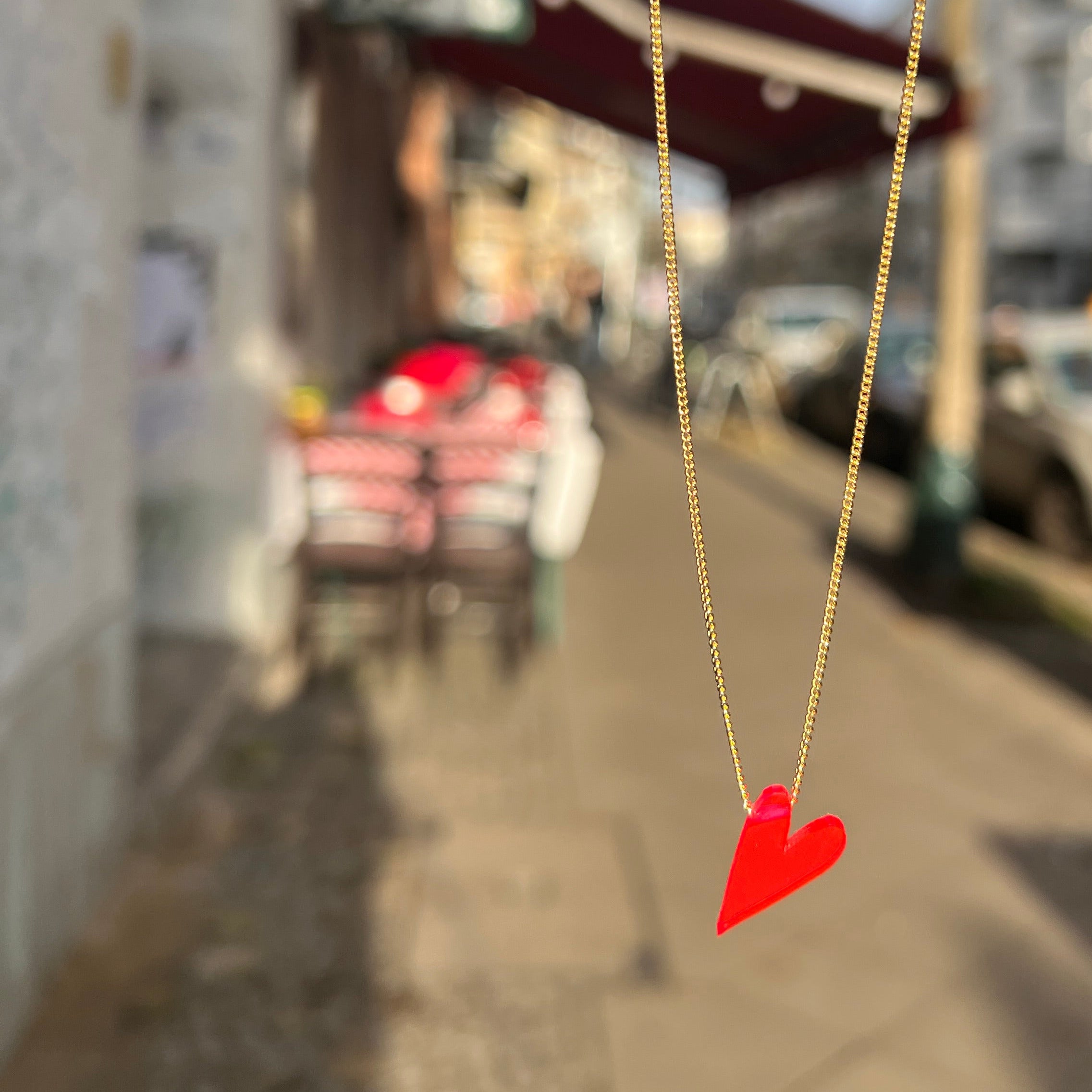 Also wir haben unser Herz sowas von verloren an diese Combi aus knalligem neonfarbenem Herz und eleganter goldener Kette. Zieht die Blicke auf dich, bringt Farbe ins Spiel und lässt...